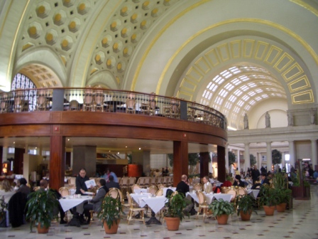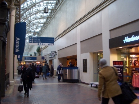 ユニオン駅。下がレストラン。右が予約カウンター。 |