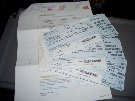 アムトラック時刻表と、現地で買ったチケット。 |