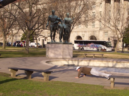 腕立て伏せを応援する銅像。 |