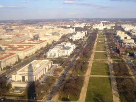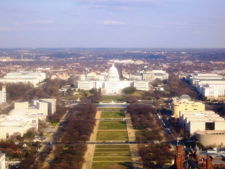 国会議事堂から、ナショナル・モールとワシントン塔。 |